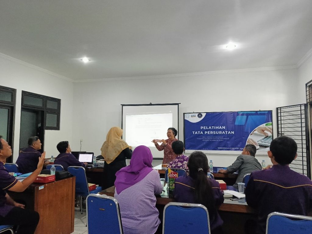 Metode Pelatihan yang digunakan berupa ceramah dimana materi disampaikan oleh instruktur melalui ceramah untuk memberikan pemahaman dasar. Tak hanya ceramah, parra peserta diminta untuk melakukan praktik penulisan surat dengan bimbingan instruktur, baik secara individu maupun kelompok diselingi dengan analisis contoh-contoh surat resmi yang baik dan yang kurang baik untuk pembelajaran lebih mendalam. Setelah itu, peserta dapat melakukan diskusi dan tanya jawab sebagai bentuk sesi interaktif untuk membahas masalah dan tantangan yang dihadapi peserta dalam tata persuratan. Peserta juga diberikan tugas untuk menulis surat tertentu, yang kemudian dievaluasi oleh instruktur untuk memberikan umpan balik konstruktif. Melalui kegiatan ini, Laboratorium Pendidikan Administrasi Perkantoran di FKIP UNS berkontribusi secara signifikan dalam meningkatkan keterampilan tata persuratan tenaga kependidikan, yang pada gilirannya meningkatkan efisiensi dan profesionalisme dalam administrasi perkantoran di lingkungan universitas.